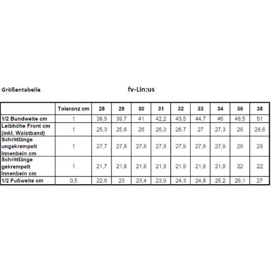 Größentabelle